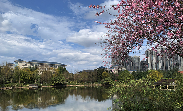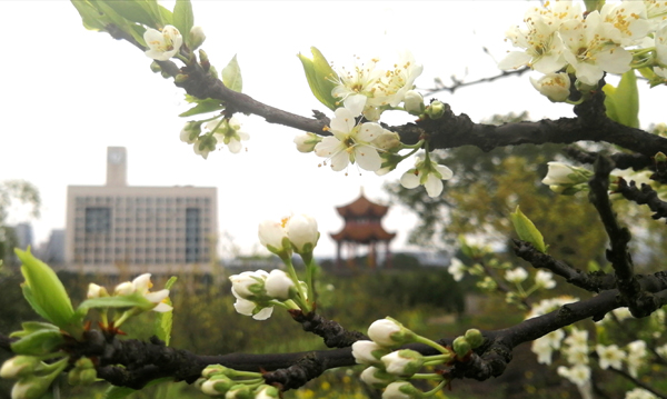 湖滨映花