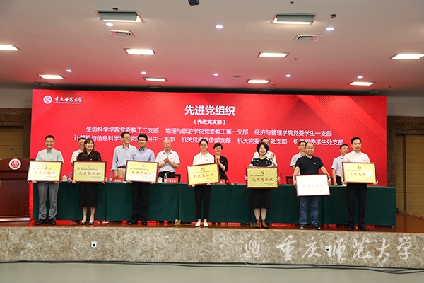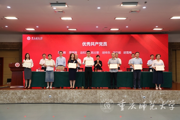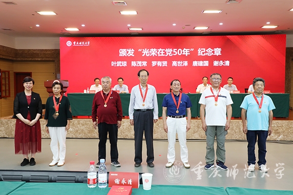 张艳向获得“光荣在党50年”纪念章的老党员致以崇高的敬意,向受到表彰的先进党组织、优秀共产党员和优秀党务工作者表示热烈祝贺,向为学校党建和事业发展作出贡献的全体党员致以节日的慰问和衷心的感谢。她指出,过去一年,学校党委深入学习贯彻习近平总书记关于党的建设的重要思想和视察重庆重要讲话重要指示精神,坚决落实市委六届历次全会精神和市委教育工委的安排部署,认真履行管党治党、办学治校主体责任,加强党委对学校工作的全面领导,全面加强学校党的建设,扎实推进全面从严治党工作,以高质量党建统领事业高质量发展取得了新成效,政治引领力、思想引领力、基层组织力、问题管控力、发展支撑力进一步提升。
