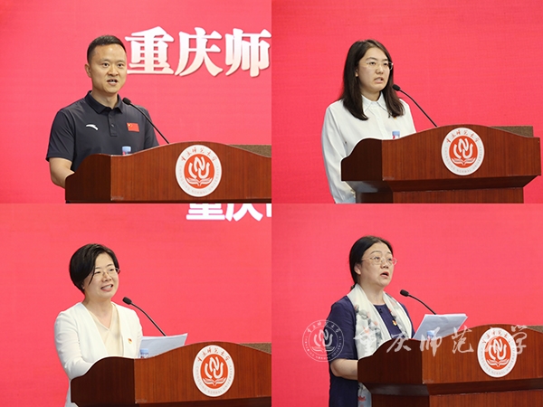 优秀共产党员代表、体育与健康科学学院副教授魏胜辉,优秀共产党员代表、物理与电子工程学院学生党员杨学楠,优秀党务工作者代表、生命科学学院党委副书记兼纪委书记刘艳坤,先进党组织代表、文学院党委书记税强先后发言,分享党员心声和党建经验。