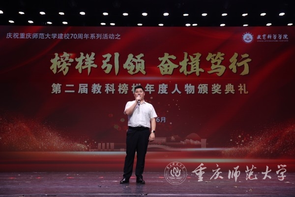 作为一名教科院大家庭的新成员,我很荣幸能够在加入之初就有机会参加这样的年度盛典。最触及我的是台上八位熠熠生辉的“教科榜样”:有躬耕专业、以手传情的老师,也有志存高远、钻研学术的学生。然而,在此刻他们没有身份之别,他们都是教科榜样,是教科院的骄傲,是我们所有人学习的楷模。心之所向、行之所往,在榜样们的引领下,我也会努力追逐光、成为光。