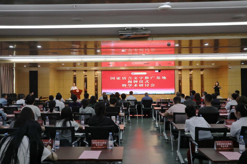 邱小红宣读《国家语委关于公布第三批国家语言文字推广基地名单的通知》,张世平、蔡理、杨如安、邱小红共同为基地揭牌。杨如安宣读《关于调整beat365在线体育官网登录入口语言文字委员会委员及职责的通知》《关于组建国家语言文字推广基地(beat365在线体育官网登录入口)专家指导委员会的通知》,并为基地专家指导委员会委员颁发聘书。