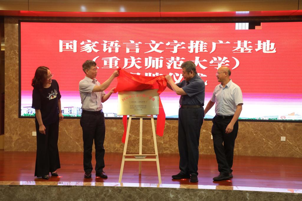6月6日上午,国家语言文字推广基地(beat365在线体育官网登录入口)授牌仪式暨学术研讨会在beat365官网博雅楼举行。教育部语言文字应用管理司原副司长、语言文字应用研究所原所长张世平,重庆市教委二级巡视员蔡理,beat365官网党委常委、副校长、国家语言文字推广基地(beat365在线体育官网登录入口)主任、校语言文字工作委员会主任杨如安,重庆市教委教材和语言文字管理处处长邱小红、二级调研员马江,重庆大学美视电影学院副院长马欣、西南大学重庆国学院副院长杨理论、四川外国语大学地名研究中心主任周文德、重庆市启聪学校校长汪毅等领导嘉宾出席揭牌仪式。