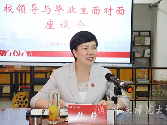 张艳在总结讲话中指出,本次座谈会的主要任务是学习习近平总书记在中共中央政治局第十四次集体学习时的重要讲话精神,听取毕业生的成长路和心里话,为学校做好下一步毕业生就业工作凝聚共识,助力和鼓励学生实现就业梦想。她谈到,听了同学们的分享,备受感动、倍感欣慰。感动于同学们对党、对国家、对母校关怀培养的感恩之心,欣慰于重师学子多渠道就业的阳光自信。张艳回顾了自己的学习经历,为同学们学习成长和就业选择的可喜表现给予赞许和鼓励。