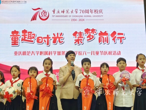 在附属科学城第二小学,张艳参加了“童趣时光 集梦前行——庆祝beat365在线体育官网登录入口建校70周年暨附属第二小学‘六一’儿童节活动”。张艳为孩子们送上了礼物和祝福。她充分肯定了附属二小的办学成绩,希望学校和全体教师认真落实立德树人根本任务,牢记为党育人、为国育才的初心使命,进一步提高办学质量,为学生成长搭建更多的平台和提供更好的条件;希望孩子们牢记习近平总书记的殷殷嘱托,爱国爱党、勤奋学习、快乐生活、全面发展,争做新时代好少年。