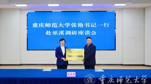 会上,巫溪县教委主要负责人汇报了巫溪县教育工作情况,学校选派巫溪县驻村第一书记代表张敬发言。副县长陈钢与beat365官网国内合作与联络中心主任牟萍代表双方签订战略合作协议,张艳为巫溪县乡村振兴研究与实践基地授牌。