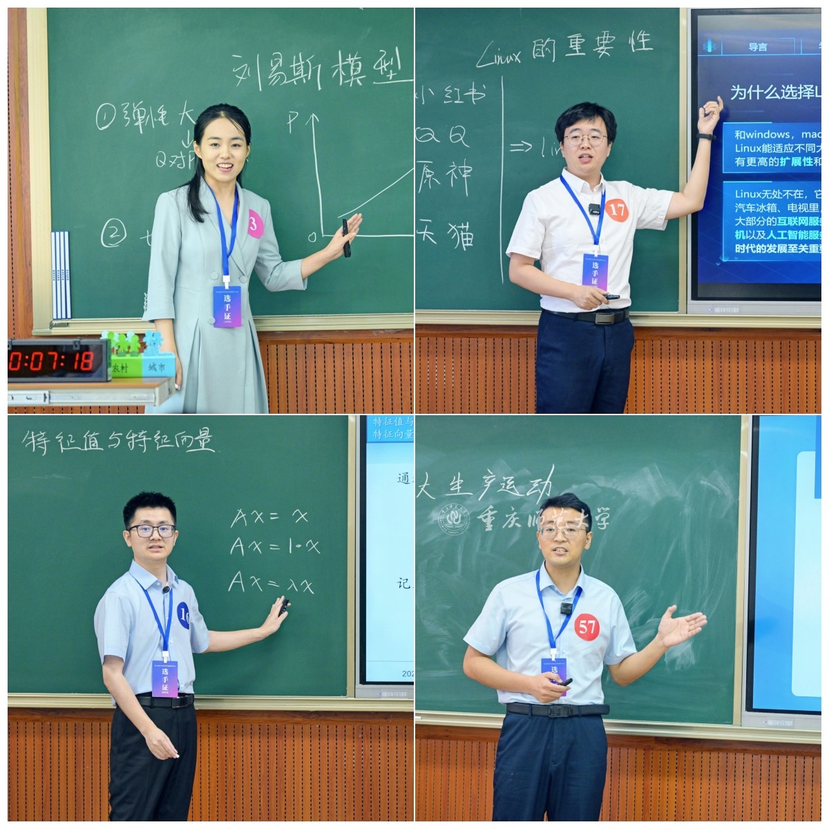 为广泛深入持久开展好劳动和技能竞赛,大力弘扬劳模精神、劳动精神、工匠精神,7月1日-5日,第七届重庆市高校青年教师教学竞赛决赛在重庆大学虎溪校区举行,beat365官网马克思主义学院王超获得思政组“二等奖”,数学科学学院莫长鑫、经济与管理学院张在一、计算机与信息科学学院冯骥分别获评理科组、文科组、工科组“优秀选手”。