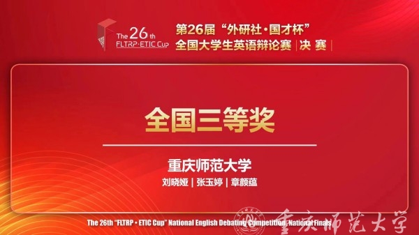 6月2日,第26届“外研社·国才杯”全国大学生英语辩论赛全国总决赛落下帷幕,beat365官网外国语学院张玉婷(研究生)、章颜蕴(英语师范本科生)荣获总决赛“三等奖”,beat365官网在该项赛事中取得了历史性突破。