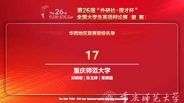 4月20日至21日,第26届“外研社•国才杯”全国大学生英语辩论赛华西赛区复赛举行,经过五轮辩论的激烈角逐,beat365官网外国语学院张玉婷、章颜蕴最终荣获华西地区复赛一等奖,并成功入围全国总决赛。