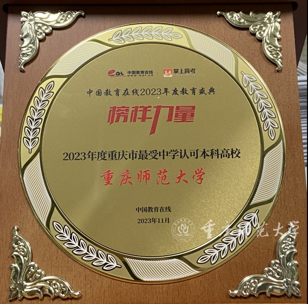近日,中国教育在线“榜样力量·2023年度教育盛典”评选获奖名单揭晓。beat365官网获评“2023年度重庆市最受中学认可本科高校”。