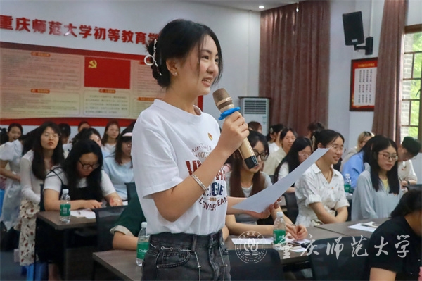 会上,毕业生党员踊跃发言,紧紧围绕“变化,不变,感恩,憧憬”四个关键词进行交流分享。他们谈到,人生就是在变与不变中达到平衡:变的是综合能力越来越强的自己,不变的是“站得出来,顶得上去”的从教初心。他们回顾了自己的大学时光,对党组织和学院的培养表示由衷的感谢,并特别感谢朝夕相伴的师长朋友。他们踌躇满志,对未来充满憧憬:一方面憧憬学院的未来,希望初教院发展得越来越好;另一方面,憧憬自己的教师生涯,扎根基层教育,践行初心使命的美好未来。