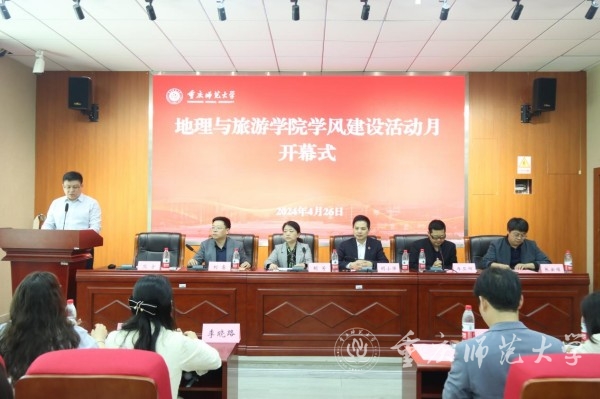 为深学笃行习近平总书记关于教育的重要论述,教育和引导全院传承优良师德、涵养优良学风,共同营造风清气正的学术生态和学习风气。4月26日下午,地理与旅游学院在致用楼102多媒体会议室举行“2024年学风建设活动月”开幕式。学校党委学工部部长、学生处处长胡小强,研究生院副院长冉亚辉,地理与旅游学院党委书记胡芳、党委副书记熊宇、副院长刘睿以及学院全体辅导员、各专业学生代表参加仪式。熊宇主持开幕式。