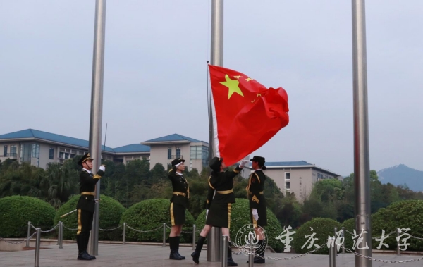 扬雄风,挺傲骨,国旗护卫队步履铿锵;升国旗,奏国歌,红旗飘扬。经济与管理学院师生在学校东大门广场庄严肃立,注视着国旗升起。