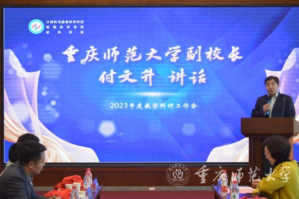 付文升在讲话中对学院取得的优秀成绩表示肯定。他指出,一是坚定发展信心,充分看到学院发展所取得的成绩,学院教学科研机制完善、氛围浓厚,为高质量发展打下了坚实基础;二是深化认识,全面把握学院发展面临的机遇挑战,学院要树牢忧患意识,积极响应数字重庆建设“1361”“416”“33618”和数字校园建设“1281”战略部署,找准自身定位,实现内涵发展;三是加压奋进,积极构建学院教学科研发展新格局,在国家大力倡导科技创新的背景下,实现错位发展、提升学院辨识度、增强科研成果转化能力。