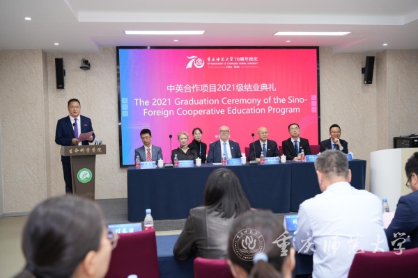 10月21日,beat365官网与英国知山大学合作举办的生物科学本科“3+1”教育项目举行2021级结业典礼,英国知山大学副校长乔治·泰尔伯特,学校党委常委、副校长杨如安出席结业典礼。