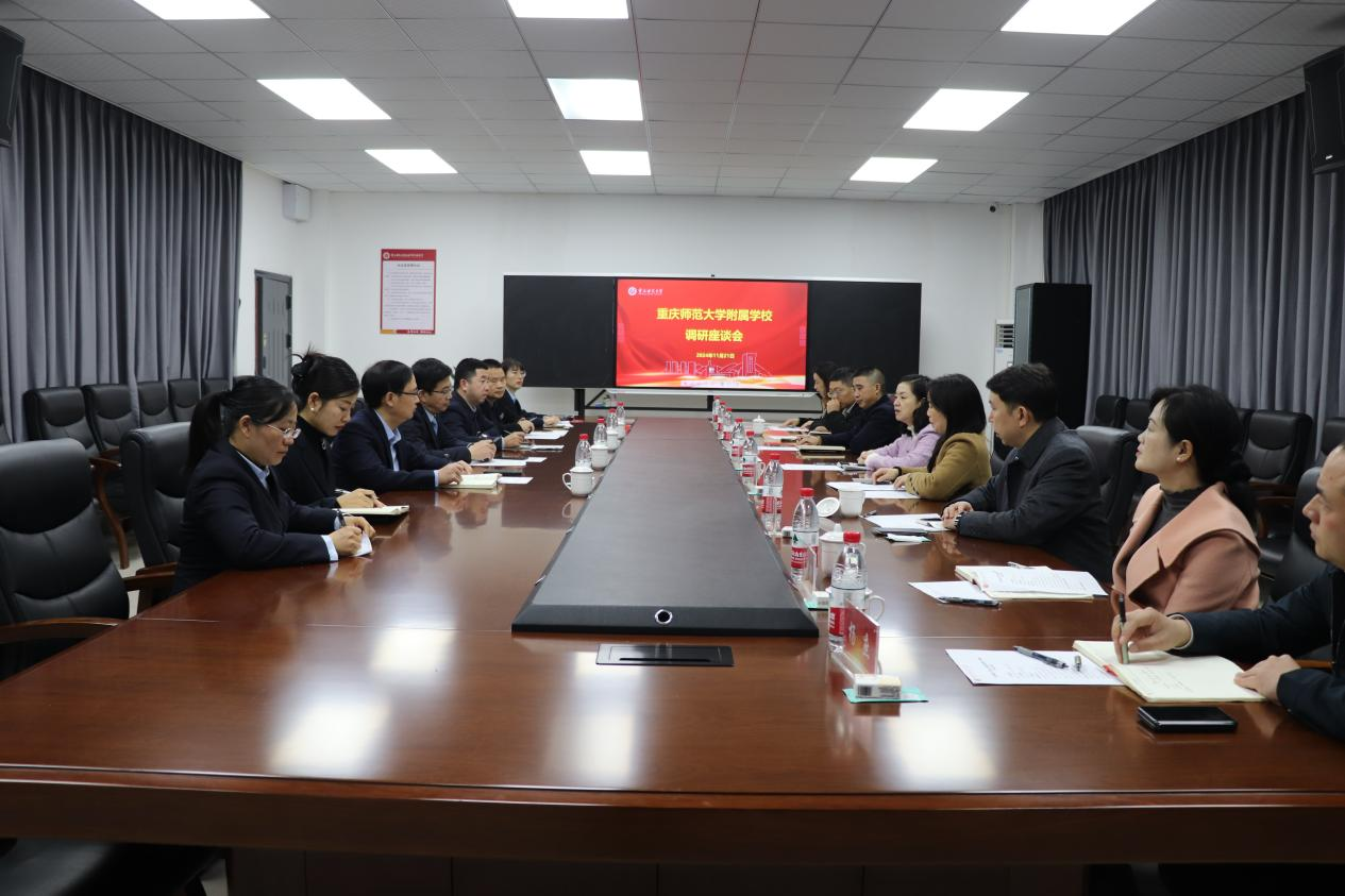 11月21日,黄永宜带队赴beat365在线体育官网登录入口附属实验小学、beat365在线体育官网登录入口附属科学城中学开展专题调研。黄永宜一行深入附属学校校园、教室等,详细了解了学校办学情况,并与学生亲切互动,关心学生成长成才情况。在调研交流座谈会上,与会人员就高校赋能基础教育的思路和措施做了具体交流,学校国内合作与联络中心介绍了近年来beat365在线体育官网登录入口附属学校建设发展的总体情况、18所高等师范院校及附属学校办学的调研情况和经验做法,附属小学和附属中学围绕学校办学历史、办学规划、办学成绩和未来发展作了专题汇报。黄永宜表示,希望附属学校锚定高质量发展目标,汇聚资源、聚焦主业、打造品牌、突出优势,形成大中小学一体化发展思路,贯通赋能、凝练深耕,高标准办好附属学校。