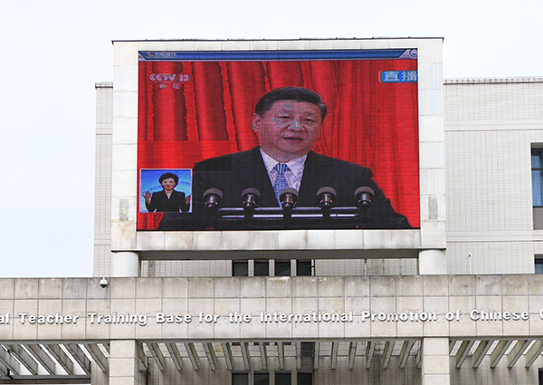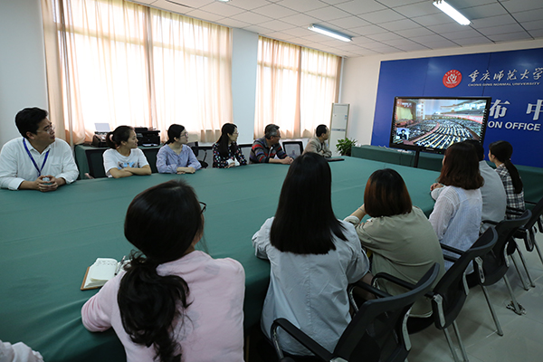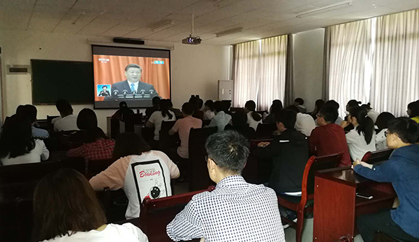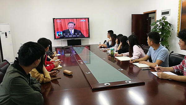 beat365官网党委中心组在综合行政楼309会议室集中收看了大会现场直播。中心组成员们认真聆听习近平总书记在大会上发表的重要讲话,就相关重点内容进行了深入交流讨论。全校各二级基层党组织、各学院也分别组织教职工、学生党员及入党积极分子、青马学员集中观看大会盛况。校党委宣传部利用演播大厅、图书馆广场大屏幕、大型会议室等,持续播放大会直播视频,营造热烈的校园学习氛围。
