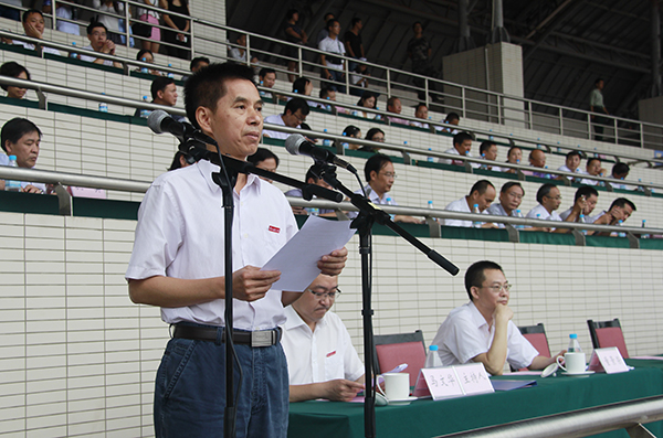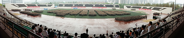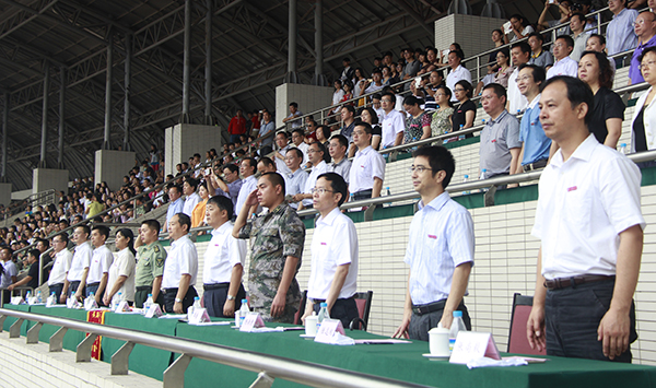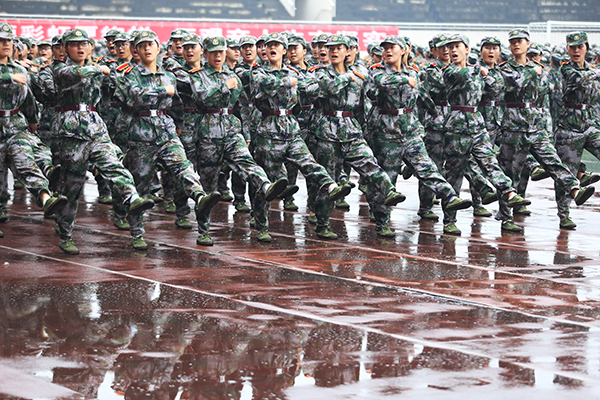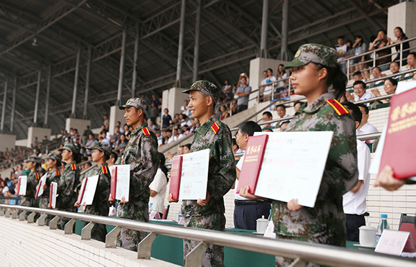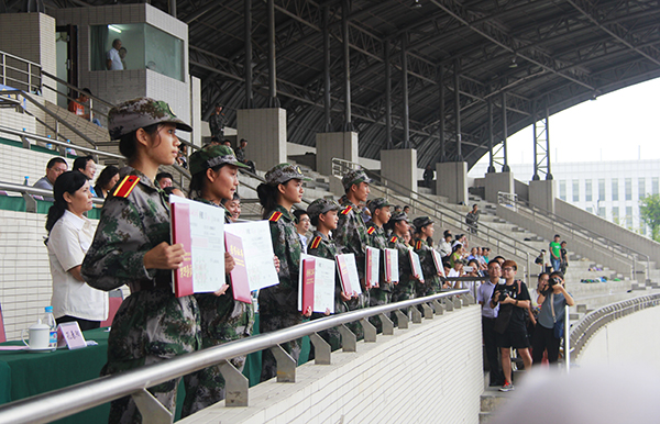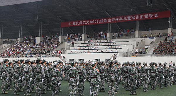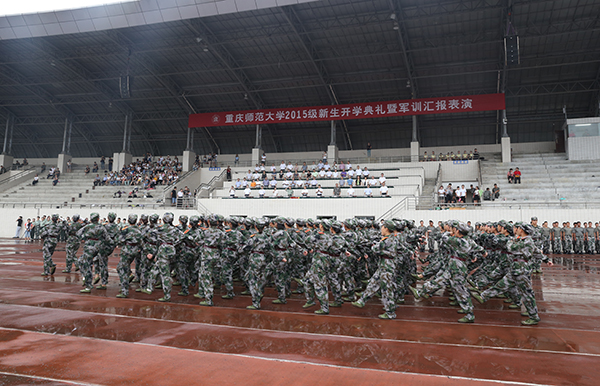 9月5日上午,beat365官网2015级新生开学典礼暨军训汇报表演在大学城校区田径运动场举行。