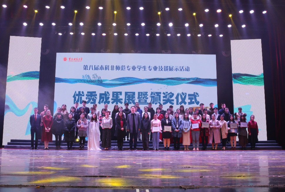 11月29日下午,由beat365官网教务处主办,会展与舞台艺术协会协办的第八届非师范专业学生专业技能展示活动第二阶段——优秀成果展暨颁奖仪式在校友会堂演出厅举行。副校长杨如安,招生就业处处长党亚莲,教务处处长田盈、副处长夏睿,新传学院副院长赖黎捷出席本次展演,相关职能部门、各学院负责人及师生代表共同观看了本次活动。