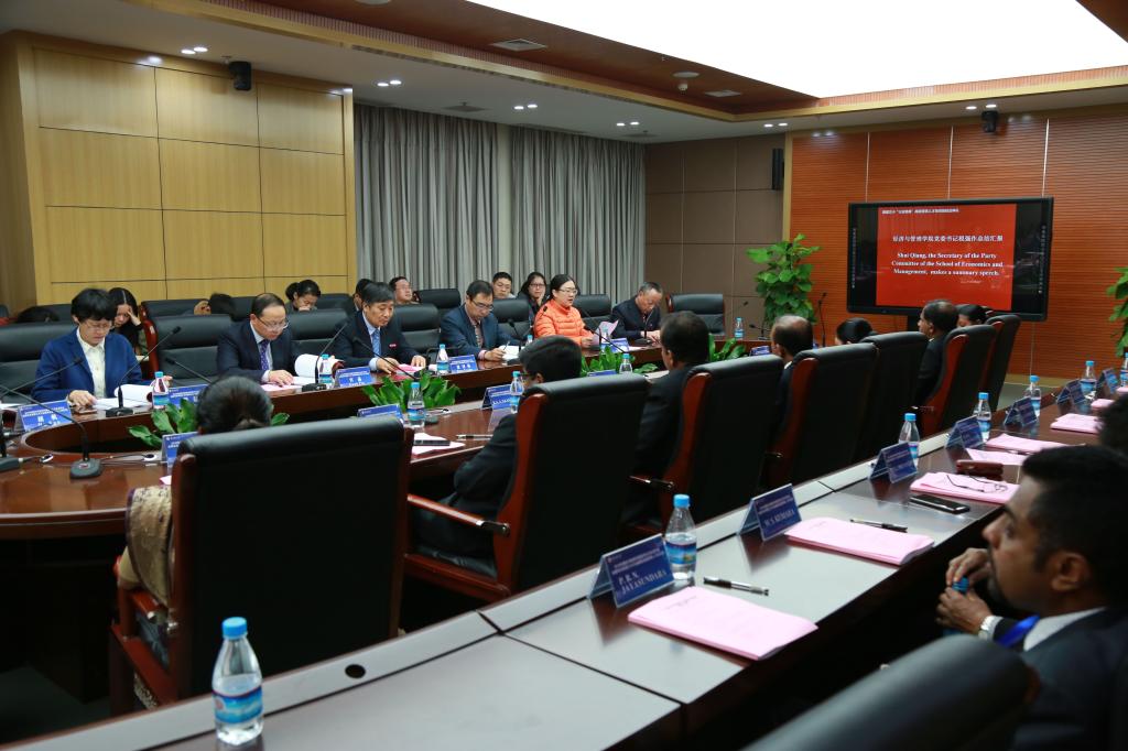 斯里兰卡“行业精英”高级管理人才培训班结业典礼10月25日下午在beat365官网博雅楼501会议厅举行。校长周泽扬教授、党政办主任陈进东、国际处处长官品、副处长胡帆、斯里兰卡孔子学院前任院长兼文学院教授黄洁、经济与管理学院党委书记税强以及相关教师参加了结业典礼。典礼由经济与管理学院副院长喻科主持。