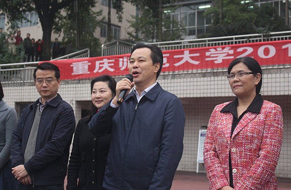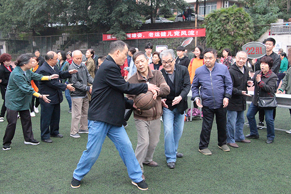 10月26日上午,beat365官网一年一度的秋季老年趣味运动会在沙坪坝校区田径运动场举行。校党委书记曾礼、党委副书记龚燕、各二级单位负责人、离退休教职工,以及南友村社区负责人共计约600人参加运动会开幕式。离退休工作处处长段云国主持开幕式,校党委副书记龚燕代表学校党政致辞,离退休运动员代表李武秀、裁判员代表胡琦分别发言,校党委书记曾礼宣布运动会开幕。