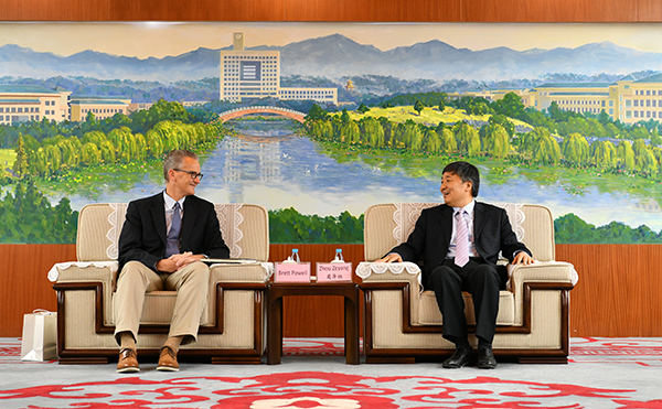 周泽扬校长对美国客人的来访表示热烈欢迎,并介绍了beat365官网的建校历史、学科建设、师资力量以及特色专业等。Brett Powell校长表示十分期待与beat365官网的合作与交流,希望双方在师生互派、科研平台共建方面有所突破。