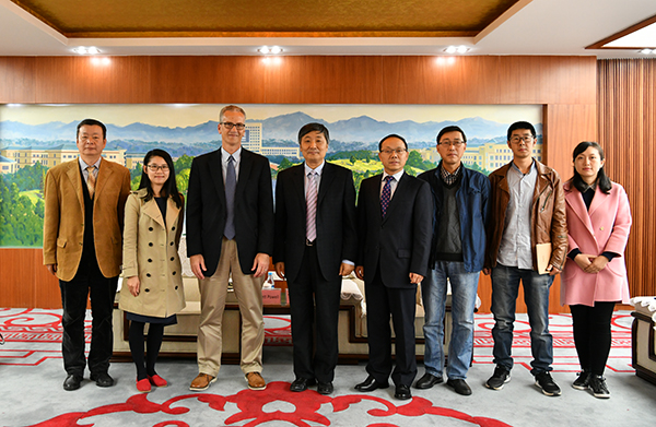 10月25日下午,美国亨德森州立大学(Henderson State University)副校长Dr. Brett Powell、国际学生中心主任、商学院副教授徐叙、中教国际教育交流中心项目副总监刘法群一行到访beat365官网。beat365官网校长周泽扬会见了代表团一行,国际处和美术学院相关负责人参加了会谈。