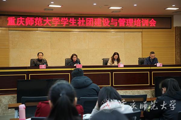 3月7日下午,校党委宣传部、保卫部、校团委联合举办的学生社团建设与管理培训会在博雅楼504会议厅举行,校党委宣传部部长毛宇、副部长徐赤、保卫处副处长方敏,以及学生社团指导教师、社团学生骨干近300人参加。会议由校团委书记毛霞主持。