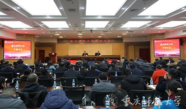 曾书记谈到,2018年,学校事业内涵发展也取得一系列新成果:学校成功增列博士学位授予单位,硕士学位点实现学院全覆盖,学位点评估全部通过验收;启动普通高等学校师范类专业认证试点工作,扎实做好审核评估自评自建,顺利迎接本科教学工作审核评估;开展“内涵式发展与高水平师范大学建设大调研大讨论”,形成了学校校情分析调研成果,为谋划改革发展目标思路、凝练事业发展举措奠定基础;拟定出台新绩效分配方案,用足用活政策调整绩效工资标准,实现政策内最大化调标;坚持党管人才,把人才队伍建设作为重点工作,进一步加大人才引进培养力度;科学研究提档加速,标志性成果实现重大突破,抢抓重庆市战略机遇,成功申报重要建设项目;推动教育国际化进程,新增巴布亚新几内亚孔子学院,实现了孔子学院五大洲布局;职业教育和继续教育实现新作为,平台建设取得较大进展;推进10.46万平方米新建项目建设工作,学校的基础设施更加完备。