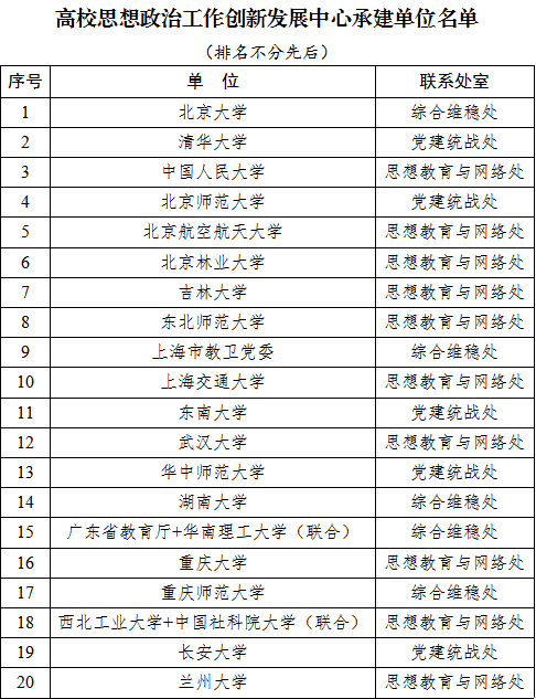 近日教育部思想政治工作司下发函件(教思政司函〔2019〕3号)公布了全国首批高校思想政治工作创新发展中心入选名单。beat365官网成功入选,成为全国20个入选单位中唯一一所地方高校,实现了学校在教育部人文社科平台零突破。