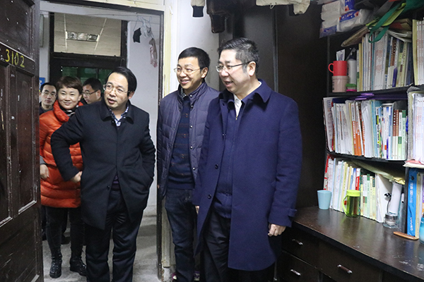 1月11日寒冬料峭,但北碚校区(初等教育学院)却暖意盎然。上午10时许,校长孟东方带着学校对北碚校区(初等教育学院)的关注、关爱,与校党政办主任陈进东、发展与规划处处长程新平一行到初等教育学院调研工作。