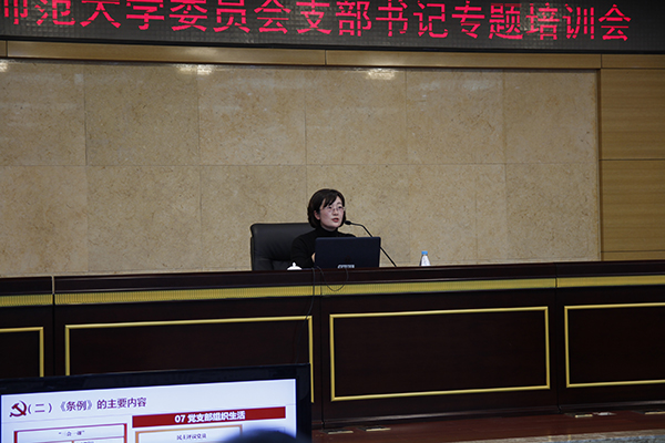 此次培训以学习贯彻《中国共产党支部工作条例(试行)》为主题,党委组织部副部长王丽萍在工作培训中坚持问题导向,结合支部工作实务,详细解读了《中国共产党支部工作条例(试行)》的制订背景、意义,框架结构和主要精神。赵骏部长对党支部今后的工作提出,要深入贯彻落实全国全市组织工作会议精神,要抓紧学习贯彻中央党支部工作条例和学校教师党支部、学生党支部建设标准,要做好近期党支部工作总结和党支部书记抓党建工作述职。培训会上,党委组织部为每位基层组织书记配备了自编的《基层组织工作手册》《组织干部工作文件选编》,作为支部工作案头书,辅助支部书记做好基层党建工作,强化支部标准化、规范化建设,提升组织力。