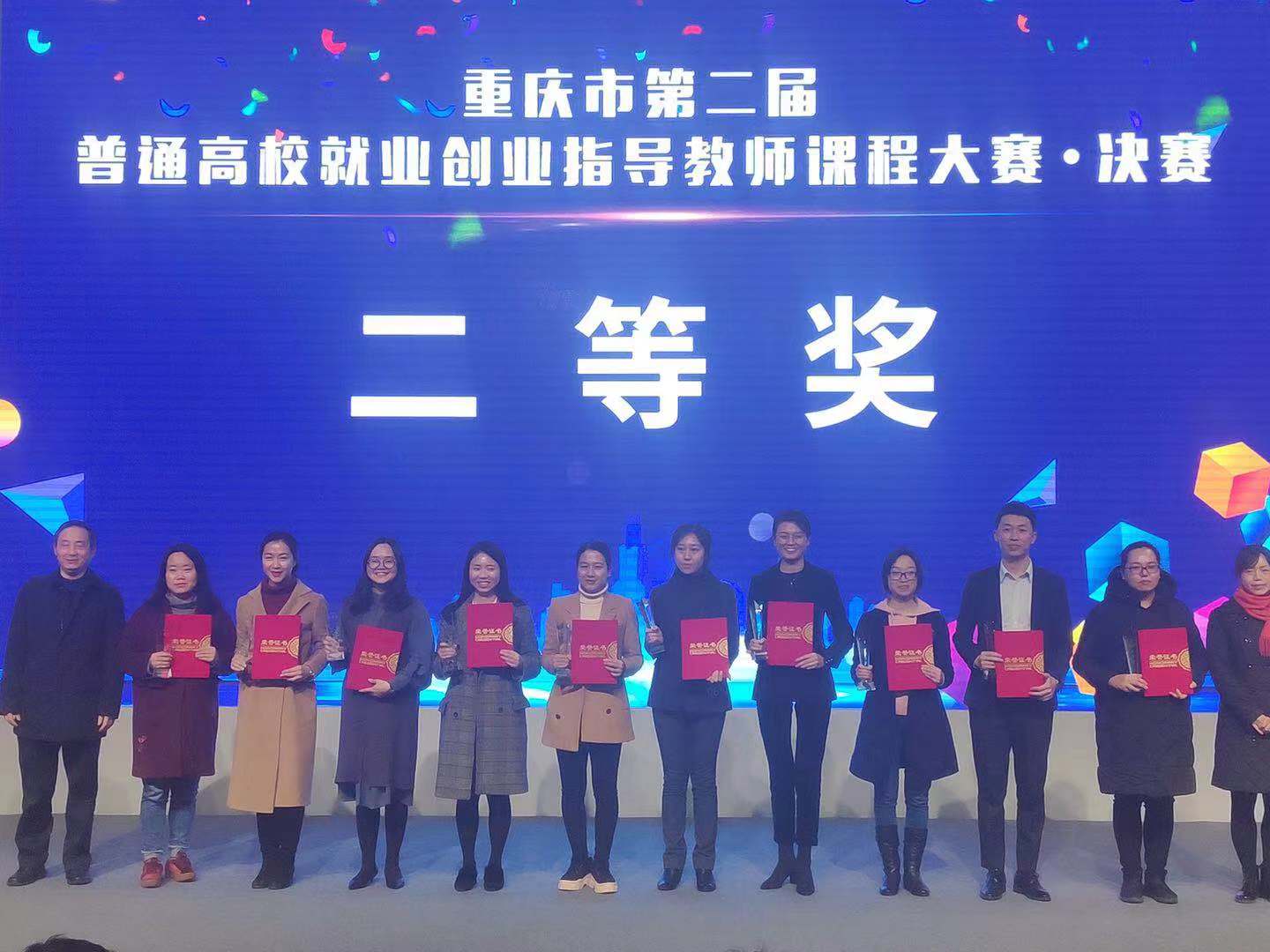 2018年12月21日,重庆市教委举办的“重庆市第二届普通高校就业创业指导教师课程大赛”决赛结束,beat365官网3名教师进入市级决赛并获奖。其中招生就业处的逯璐老师获得二等奖,计算机与信息科学学院的孙平老师和外国语学院的邸少华老师获得优秀奖。同时,beat365官网获得优秀组织奖。