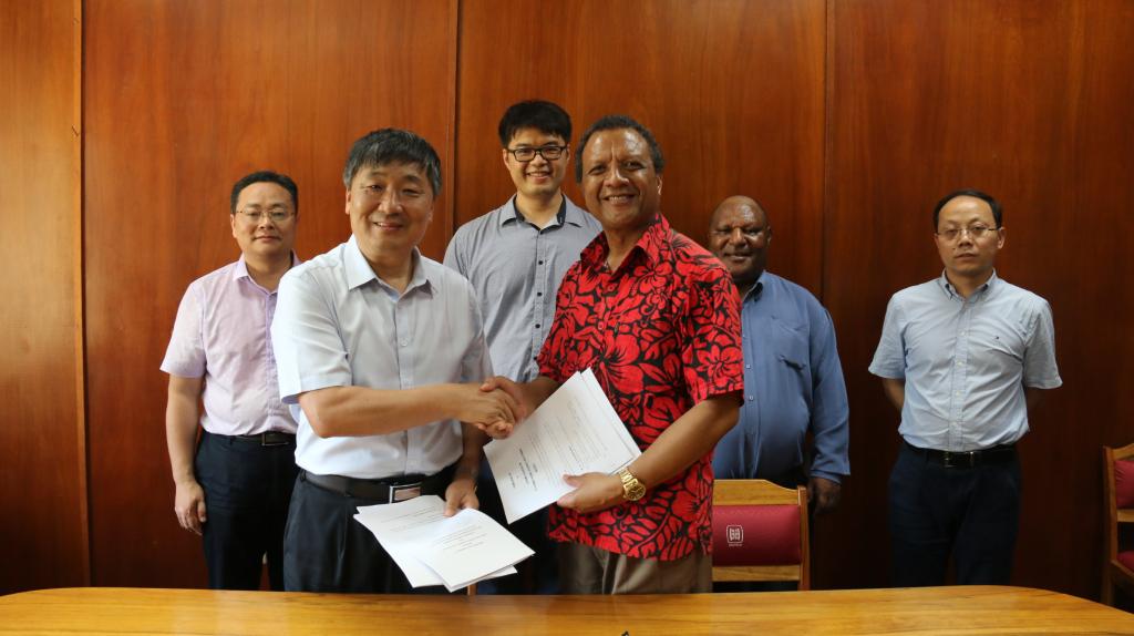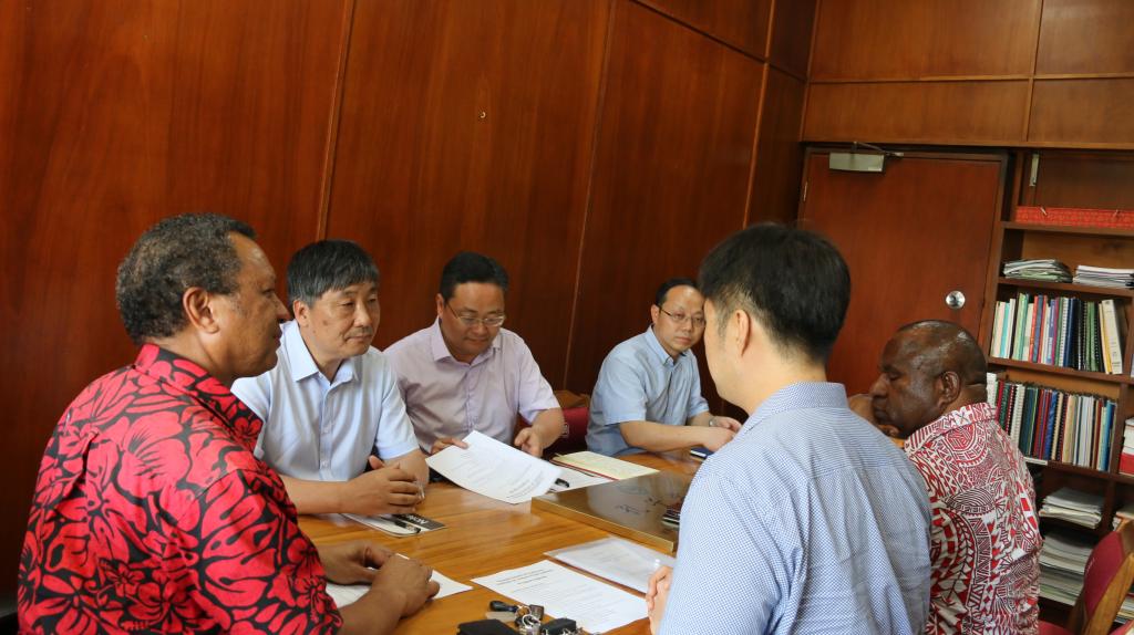 在巴布亚新内亚科技大学,beat365官网代表团与科大相关学科代表就开展两校之间多领域交流合作展开讨论,并就汉语教学、中国文化传播、科学技术、职业培训、巴中两国研究交流等方面达成共识。周泽扬校长和巴布亚新内亚科技大学代理校长Ocean Reagen代表双方签署了合作共建孔子学院协议。为切实推进新建孔子学院建设,代表团还参观考察了未来孔子学院办公、教学、教师住宿等场地,以及当地交通、购物、就医等情况,并就如何对接汉语学习与中华文化的实际需求,与当地华人华侨进行深入交流,取得许多共识。