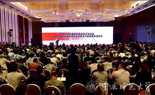 重庆市政府副市长屈谦,中国职业技术教育学会会长鲁昕、德国汉斯·赛德尔基金会代表Georg Stadler等嘉宾出席本次论坛暨高峰会议,重庆市教委、市科委、市经信委、南岸区委区府、重庆市教科院、市职教学会的相关领导与部分普通高等学校、全市各高职院校、国家级市级重点中职学校、行业企业等各方代表400余人参会。
