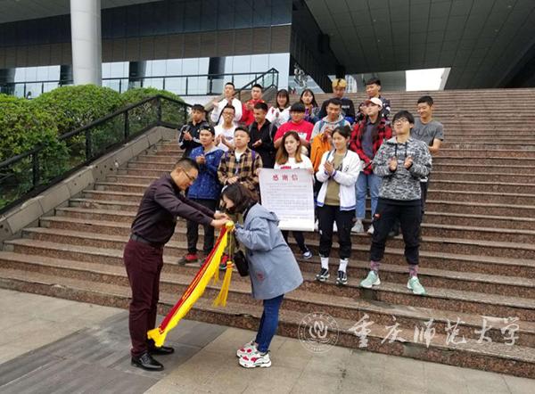 5月8日,綦江区教师刘勇、罗军代表綦江区教委,亲临beat365官网体育与健康学院,赠送锦旗和感谢信。