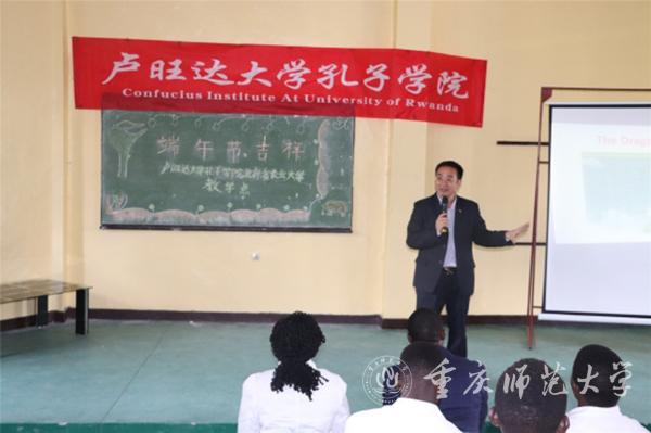 张显院长发表了激情洋溢的讲话。他鼓励同学们一定要把握机遇,争取做好人文交流的使者,为建设美丽的卢旺达作出贡献。外派汉语教师叶泽梅系统地介绍了中国端午节的相关文化,让同学们了解端午节的由来和吃粽子、赛龙舟、挂艾叶等有趣的风俗。在采访中,同学们纷纷表示了对中国伟大的政治家、诗人屈原的敬意。