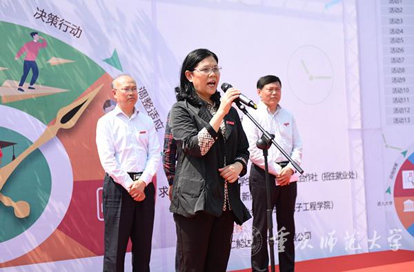 副校长杨如安指出,大学生生涯规划体验周既是一场大型户外闯关式活动,更是一种大型现场体验式生涯教育活动,是一种新型的教育形式,有效地补充传统的课堂式生涯教育的不足,丰富了学校的生涯教育形式。希望同学们珍惜机会,积极参与,用心体验,认真投入,运用课堂上学习到的理论进行实践,进一步厘清自己的期待,更加坚定自己的选择,更加有效地采取行动。