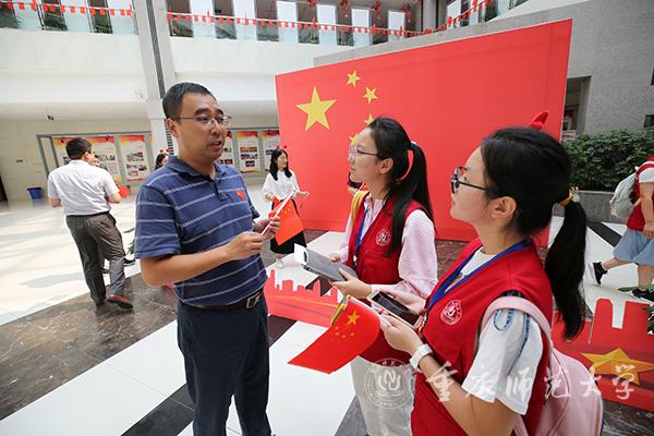 党委常委、组织部部长张明志全程观看了庆祝中华人民共和国成立70周年大会。他说:“看到党旗高举、国旗飘扬、军旗招展,增强了我的民族自豪感。70年来的伟大成就让每一个中国人有成就、有地位、有力量。在新的前进征程上,我们定能坚持教育报国守初心、做到立德树人担使命,努力创造出新的更大成绩,继续为实现两个‘一百年’奋斗目标、实现中华民族伟大复兴的中国梦而努力奋斗!”