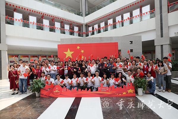 “壮阔70年,奋进新时代。”70年风雨兼程,70年砥砺奋进,在中国共产党坚强领导下,中华民族迎来从站起来、富起来到强起来的伟大飞跃,新中国在实现中华民族伟大复兴与满足人民美好生活向往的征程中奋勇前进。重师人志存高远,脚踏实地,勇敢承担起时代使命,凝聚成一往无前的力量,推动中华民族伟大复兴的航船乘风破浪、扬帆远航,在越来越宽的大道上书写新时代华章!