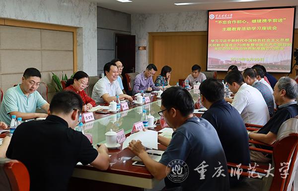 学习座谈会上,民主党派、无党派代表人士着重介绍了各党派、知联会主题教育活动的开展情况,以及学习习近平新时代中国特色社会主义思想心得体会。民盟市委委员、区委副主委、重师总支部主委付文升教授表示,通过主题教育活动的学习,进一步深刻认识和理解了习近平总书记关于中国特色社会主义参政党“四新”“三好”的要求,增进了对中国共产党和中国特色社会主义的政治认同。致公党原市委常委、区委主委郭跃教授表示,要了解中国共产党与各民主党派团结奋斗的光辉历程,在学习历史中来深刻认识各民主党派与中国共产党的合作初心,就是自觉接受中国共产党的领导,与党同心,为中华民族的伟大复兴风雨同舟,携手前进。