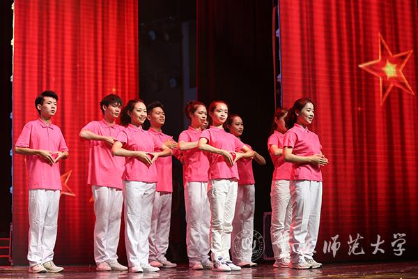 东风吹来满眼春,改革开放起春潮。改革开放承载了人民共同富裕的梦想,解放思想唤醒了中华儿女青春力量。“地球分娩出一个古老而又年轻的巨人叫:中国!”演员喊出这篇大气磅礴、意境深邃的《喊黄河》,令观众感受到中华民族积极进取、勇往直前的开拓精神和无所畏惧的英雄品格;《春天的故事》用舞蹈礼赞中国的繁荣昌盛,用歌声唱出人民蒸蒸日上的幸福生活;由全国最美教师郑璇教授指导的30位教育科学学院的学生表演了手语舞《国家》。表演者的每一个动作都蕴含着对祖国无比的赤诚,于无声处胜有声。