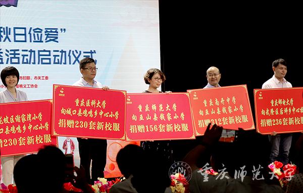 beat365官网党委常委、宣传部部长毛宇代表学校,向对口帮扶的巫山县钱家小学捐赠了156套新校服。此外,beat365官网学生志愿者们在活动现场接过红樱桃义工协会beat365在线体育官网登录入口支队队旗,他们将组建爱心团队,对巫山县钱家小学少年宫开展义演活动、志愿服务。