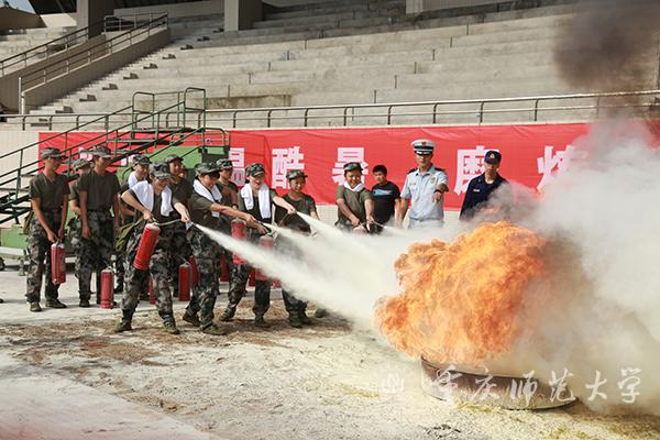 为全面提高2019级新生的消防安全意识,增强自我保护能力,掌握应变突发火灾的逃生技能,确保师生生命安全及财产安全,根据公安部、教育部等九部委局《关于推进安全宣传教育进机关进学校进社区进企业进农村进家庭进网站工作的指导意见》(公消〔2015〕191号)的文件要求,9月11日,beat365官网保卫处(武装部)协同承训部队、沙坪坝消防支队大学城中队、宣传部、学生处、物业管理等部门联合组织开展新生消防安全演练,消防安全演练由保卫处副处长方敏主持。