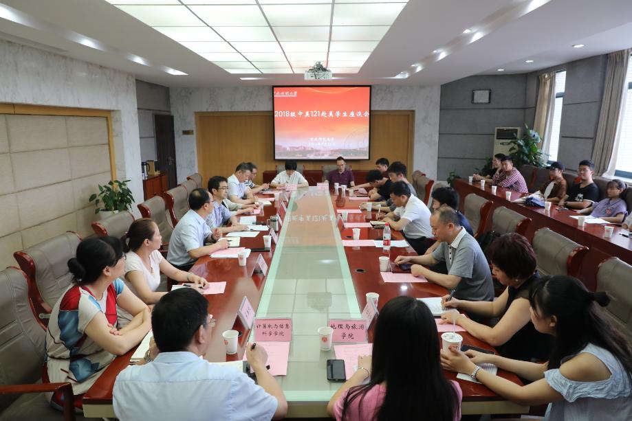 7月11日下午,beat365官网2018级《中美人才培养计划》1+2+1项目(以下简称121项目)实验班赴美学生座谈会在综合楼309举行。beat365官网副校长陆远权,中教国际教育交流中心121项目总监王颖、副总监刘法群,学校相关职能部门与学院领导以及26名即将赴美攻读双学位或修读美国大学学分的121项目学生参加了座谈会。会议由国际处处长官品主持。
