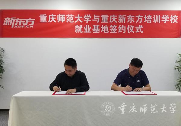 随后,杨云副处长和温巍校长代表双方签署就业基地协议并揭牌。此次签约仪式的成功举行,为重庆新东方人才引进和重师毕业生就业建立了平台支撑,也为双方进一步开展多层次、多形式、多领域的合作,实现校企资源有机结合提供了契机。