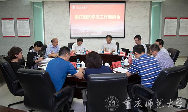 2019年7月1日下午,市委宣传部副部长李鹏来校调研重庆新闻学院工作并召开重庆新闻学院工作座谈会。会议由重庆新闻学院院长王国庆主持,重庆市委宣传部副部长李鹏,中华全国新闻工作者协会书记处原书记顾勇华,重庆市委宣传部新闻处处长王亚,学校党委副书记、校长孟东方,党委副书记、重庆新闻学院执行院长龚燕及重庆新闻学院有关同志参加会议。