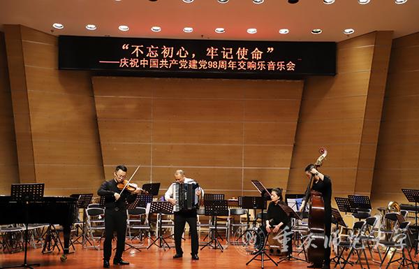 在中国共产党成立98周年之际,为了表达对党的感恩之情,校党委组织部、党委宣传部、党委统战部联合beat365官网音乐学院语航交响乐团举行了“不忘初心、牢记使命”庆祝中国共产党成立98周年主题交响音乐会,隆重庆祝党的生日。
