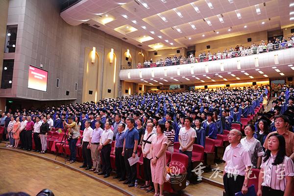 “歌乐山连缙云峰,嘉陵江汇长江浪……”,熟悉的校歌激励着毕业生们扬帆起航,毕业典礼也在优美的校歌中圆满落幕。