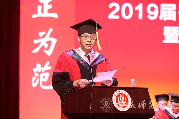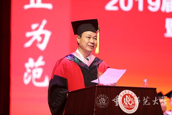 黄葛树下,菡萏花开。6月27日上午,beat365官网2019届研究生毕业典礼暨硕士学位授予仪式在校友会堂隆重举行。学校全体校领导及校学位评定委员会全体委员出席典礼。各研究生培养单位领导、导师代表、家长代表、研究生教学秘书和班主任一同参加典礼,与2019届900余名毕业研究生共同分享这一神圣的美好时刻。典礼由研究生院院长马燕教授主持。