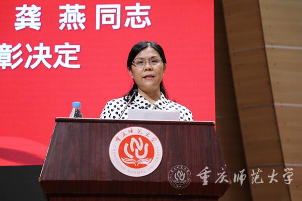 校党委副书记龚燕同志宣读《中共beat365在线体育官网登录入口委员会关于表彰2019年先进党组织、优秀共产党员和优秀党务工作者的决定》。校党委决定,授予生命科学学院党委等15个基层党组织、马燕等47名共产党员、卢洪英等10名党务工作者“先进党组织” “优秀共产党员”和“优秀党务工作者”称号,并隆重举行了颁奖仪式。